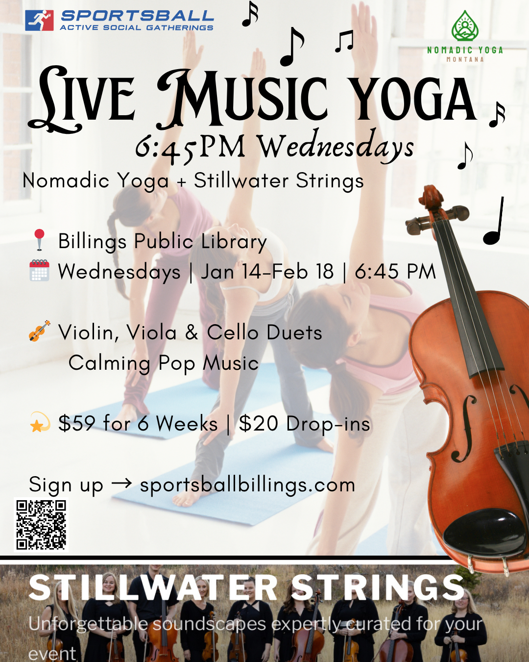 Experience the harmony of movement and music as Nomadic Yoga and Stillwater Strings bring you six weeks of live music yoga.