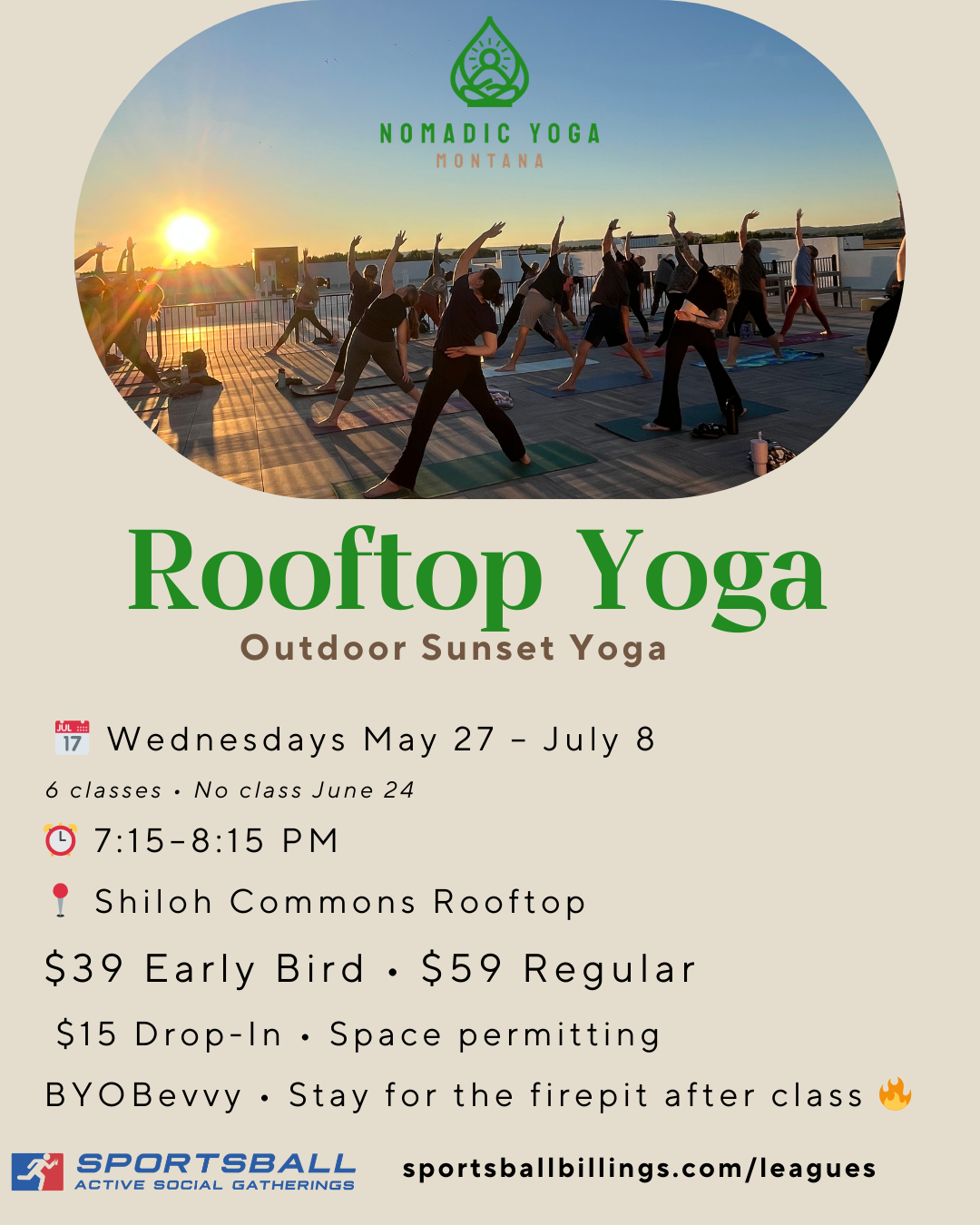 Join us for a 6-week sunset yoga series on the rooftop at Shiloh Commons building 3. As the sun sets over the west end, we’ll move through a feel-good all-levels flow designed to help you unwind, breathe deeply, and enjoy the magic of outdoor practice.