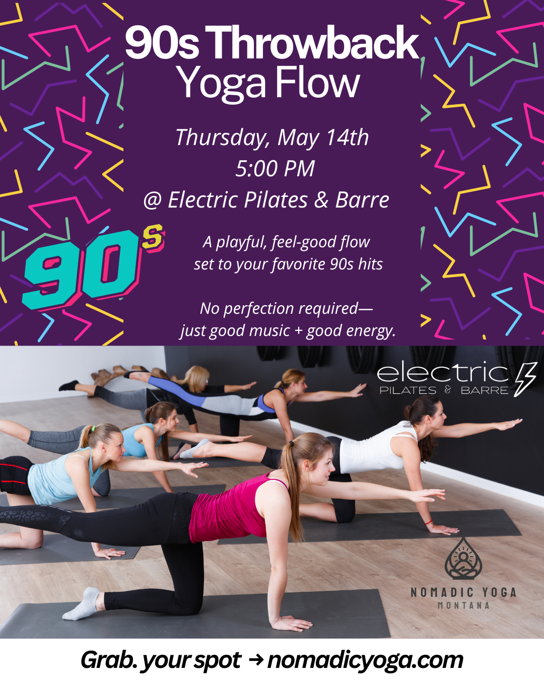 Join us for a 90s-inspired yoga flow where we’ll move, breathe, and maybe even sing along to all your favorite throwback hits—from mellow, grounding moments to upbeat, feel-good energy on the mat.
